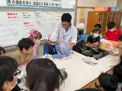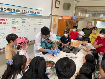 さあ、3尾目は子どもたちにやってもらいます。各クラス希望者多数の中、抽選で選ばれた3人がチャレンジ。