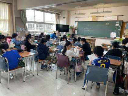 みんな集中して、シーンとした中での朝読書。本を家から持ってくる子もちらほら。読書旬間でたくさんの本と出会っています。