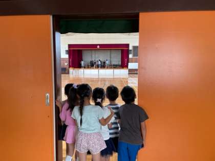 下級生が駆けつけて、体育館を覗き込んでいました。