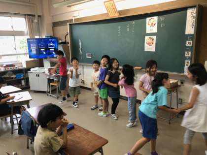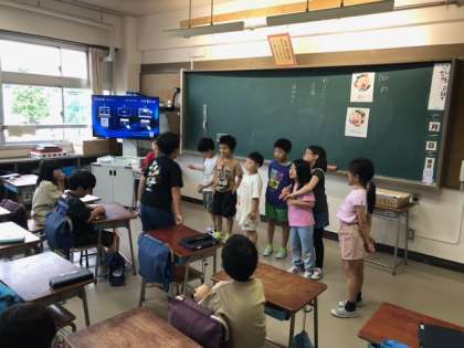 ではもしも親友が「入れて」と言ってきたら、、、。「理由を言ってやさしく断る」「後ろから並び直す」など、すてきな意見が出ました。実際に列を作ってためしてみると、にこにこで挑戦しました。