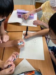 班で話し合って動物を決め、限られた時間で一生懸命描いていました!