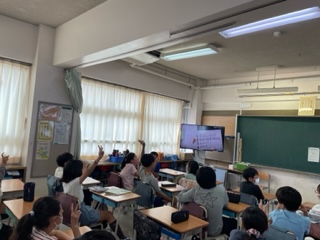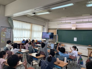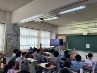 今回の集会は、主に今年山崎小にいらした先生方の3択クイズ集会です。