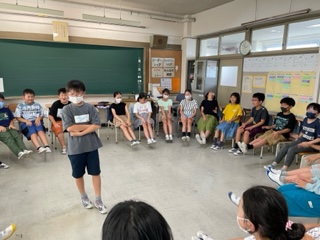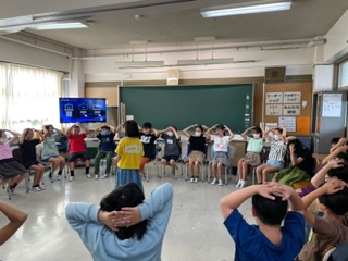 みんなは、リーダーの動きに合わせて真似して動きます。