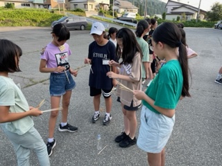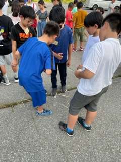 割り箸や焼き鳥の串を上から落として、ペットボトルに入ればポイントゲット!