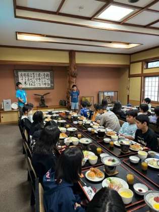 3日目の朝食はわりとお疲れモードで静かなことも多いんですが今年の6年生は元気いっぱいです。