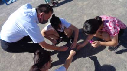 日光林間学園で天候不良のため延期していた花火を校庭で行いました。