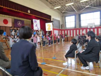 校長からは「「元気なあいさつをしましょう」「友達をたくさんつくりましょう」「自分のことは自分でしましょう」の3つを目標にして、楽しい学校生活を送りましょう。」と話しました。また、担任・教職員の紹介の後、お兄さんお姉さんとなった2年生が、歓迎の言葉と歌・合奏を1年生にプレゼントしました。真剣に発表を観たり聴いたりする1年生の表情が印象的でした。