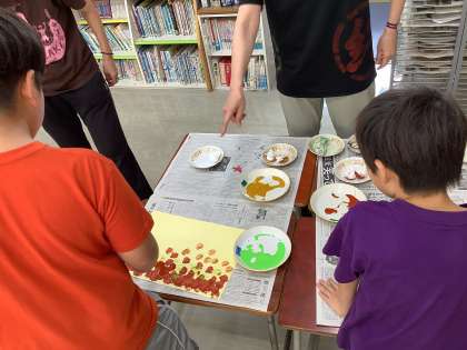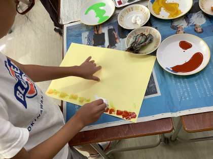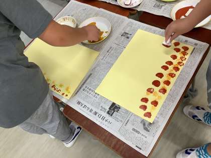 画用紙に絵の具を、ポンポンポン、とスタンプしました♪
