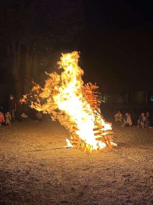 キャンプファイア レク係さんが灯した火が燃え盛ります。