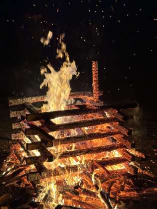なぜか一本の薪が倒れずに立っているのか見えますか?