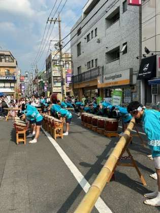 4年ぶりに梅ヶ丘商店街での山崎太鼓披露をさせていただきました。