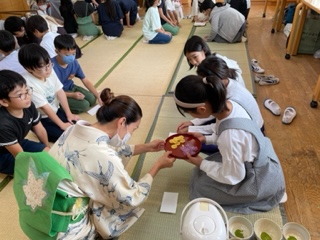 茶道の作法、礼儀をみんなで学びます。