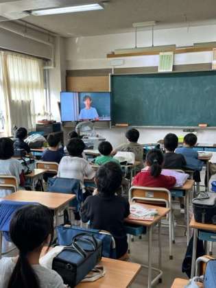 山崎小では熱中症対策として7月から9月まではテレビ朝会を行っています。
