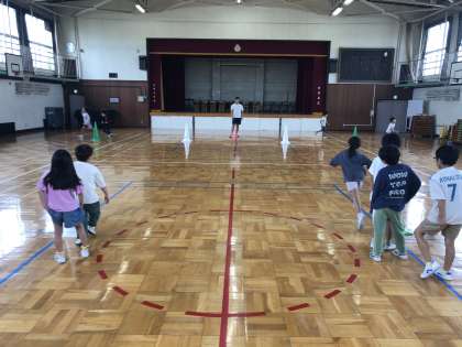 後半はビーチフラッグのようなルールで競争しながら全力疾走しました。