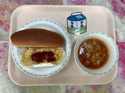 今日はさわやかな秋晴れです。給食ではスペイン風オムレツを食べます。オムレツに「じゃがいも」が入っているのが特徴です。じゃがいも好きな子が多いので、美味しく食べてくれたらうれしいです。