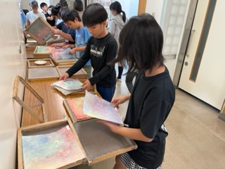 木の枠からそーっと剥がし、手に取った時「わぁ綺麗!」とみんな言っていました!