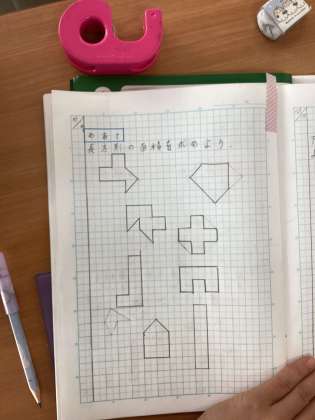 「今日は、5平方センチメートルになる形をたくさん集めてみよう!」という活動に、とても意欲的に取り組みました。