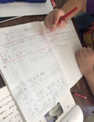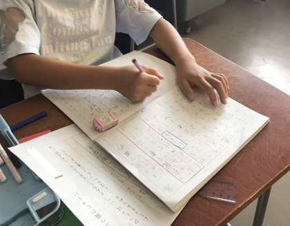 2年生になり、2つ目の説明文の学習。獣医さんの仕事を時系列で表にまとめる学習の後、「日記を書くことは獣医さんの仕事かどうか」「おふろに入ることは獣医さんの仕事かどうか」というめあてで学習しました。友達と意見を伝え合いながら交流したり、ノート2ページ目に入るくらい文章を書いたりと、前向きに取り組んでいます。