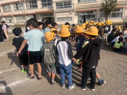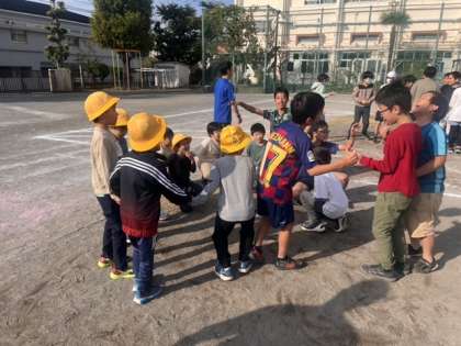 自然と、上学年と1年生が混じり合ってグループを組む姿。
