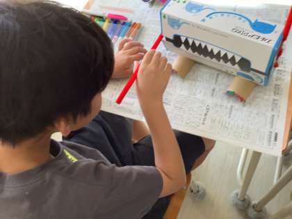 次に、各自の工夫で、目の材料を選びます。玉子パックにするのか、