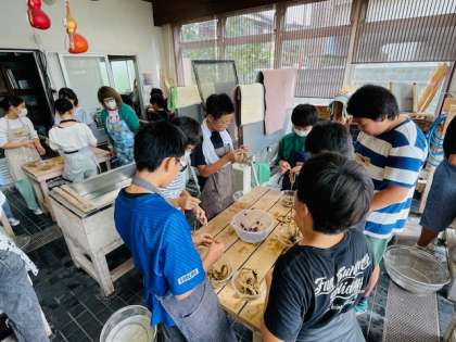 4年生の「山崎和紙」づくり以来の久々の作業、楽しんでいました。