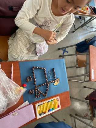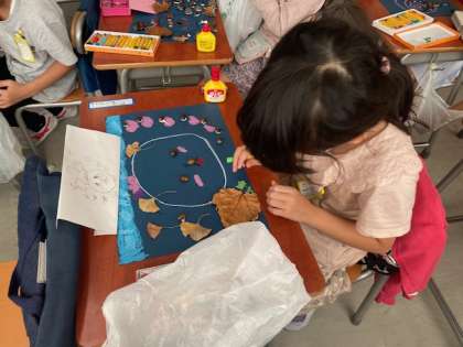 どんぐりの大きさや、落ち葉の色のちがいを見つけて、上手に表現していました。