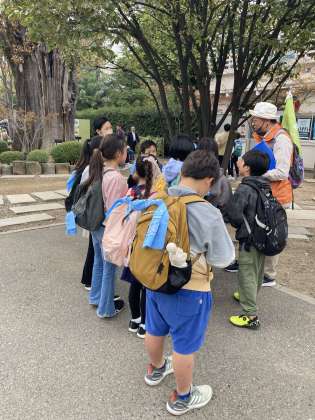 グループに分かれて、ガイドさんの話を聞いています。