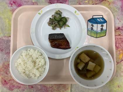 今日はお魚を使った和食献立です。さばは脂がのっていて、おいしい照り焼きになりました。急に秋らしくなりましたが、食欲の秋にふさわしく、しっかり食べてインフルエンザに負けないようにしましょう。