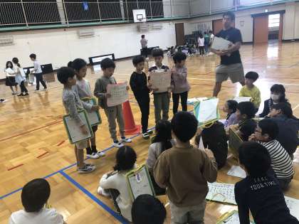 町探検で知ったこと、調べたことを発表しました。実際に行ったのは一つの場所なので、自分が行っていない場所についても、発表を通して詳しくなりました。一生懸命メモを取ったり、質問をしたりしながら聞く姿勢が立派でした。