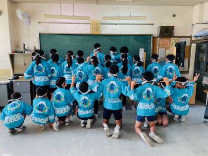 6年生は歓迎の太鼓を演奏します。 本番前に一枚!