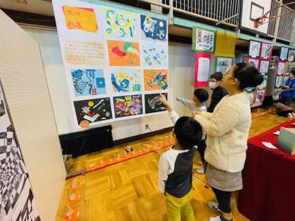 兄弟学年の1年生の子達と一緒に展覧会をみました。