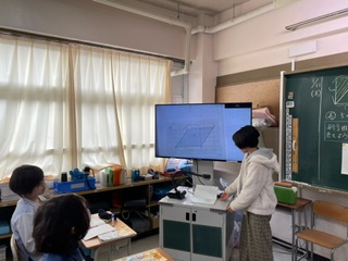 今回は、平行四辺形の面積の求め方をみんなで考えています。
