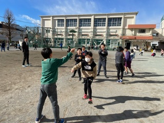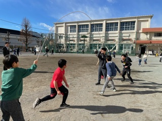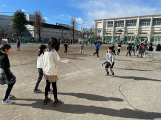 休み時間に校庭に行ってみると、長縄の練習を一生懸命していました!