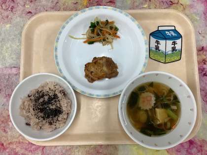 昨日2月1日は山崎小学校の開校記念日でした。今日の給食はお祝い給食と題して「お赤飯」を炊きました。どんどん汁には「祝」の文字が入ったなるとや、山崎小学校のキャラクター「ドンのすけ」と「わしのすけ」の顔をイメージした食材が入っています。とろみのついたあんかけ汁で今日のような寒い日にぴったりです。栄養と睡眠をしっかりとってインフルエンザに負けないようにしましょう。