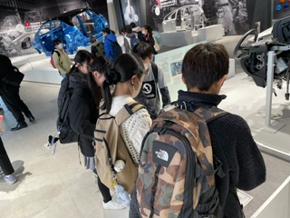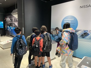 日産自動車追浜工場では、クルマづくりの工程や工夫など、展示してあるものを一生懸命見ていました!
