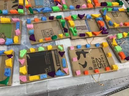 周りにスポンジペーパーを飾り付けて、完成です♪