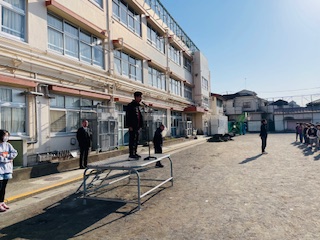 久々の校庭での朝会です!