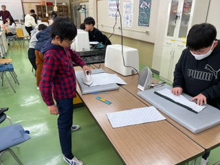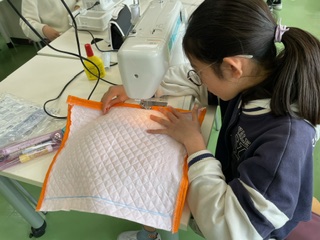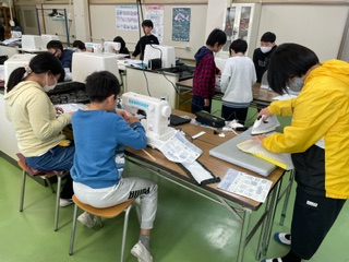 家庭科の時間では、いよいよミシンを使ってウォールポケットの作成スタートです!
