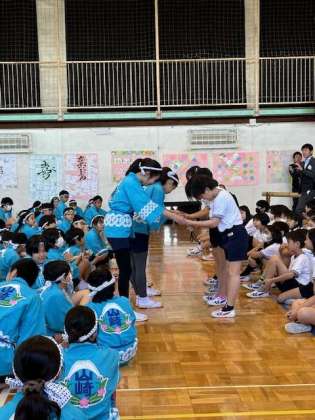 5年生頑張ってるなぁと思っていましたが、いやいややはり6年は違う!32代目を背負って1年間山崎太鼓を頑張ってきたという自負に満ちた最高の太鼓でした。その頑張ってきた魂を想いを受け継ぐのが山崎太鼓バトンタッチ!