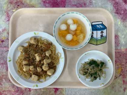 今日の焼きそばは、麻婆豆腐をかけて食べます。ご飯にかけて食べる麻婆豆腐丼も美味しいですが、こちらも人気の献立です。