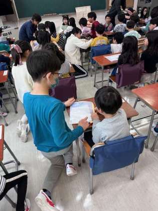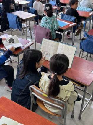 朝、教室に行ってお世話をする中で、本を読み聞かせしてあげる6年生