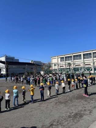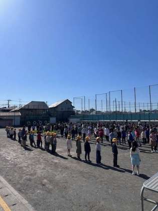 みんなで「よろしくお願いします」のご挨拶をして全校児童の列に並びました。