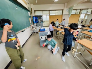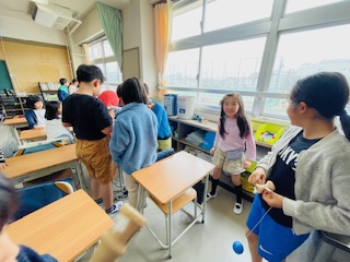 休み時間は教室で「雨の日遊びグッズ」を使えます。
