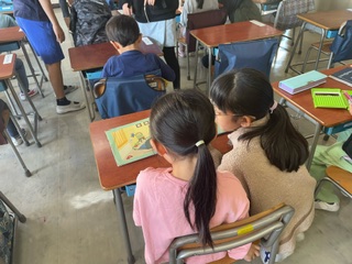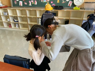 毎朝、6年生はローテーションで1年生の教室に行って朝の支度のお世話をしています。