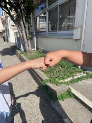 グータッチは、スピーチ終えて健闘を讃えあった2人こぶしです。