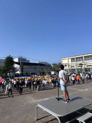 1年生を迎えて初めてみんな揃っての全校朝会。