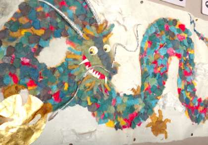児童や保護者の紙漉き同好会の皆さんが漉いた和紙が、学校内様々なところに飾られています。来校の際は探す楽しみとともに、ご覧いただけると嬉しいです。