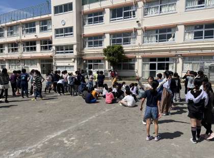 テストの後には6年生と校庭で仲良く過ごしました。これから先、高学年での活動も増えていきます。