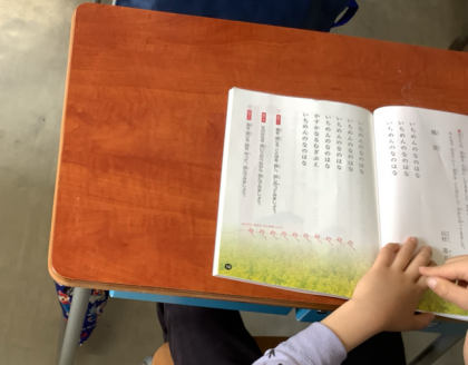 初めての日本語の授業では、詩の音読をしました。大きい声、小さい声、スキップする声、ゾウさんの声など、色んな声で音読しました。