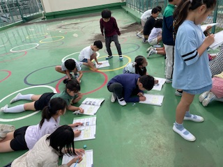 それぞれの方位ごとに、近くにあるもの、遠くにあるものを確認、メモしていきました。